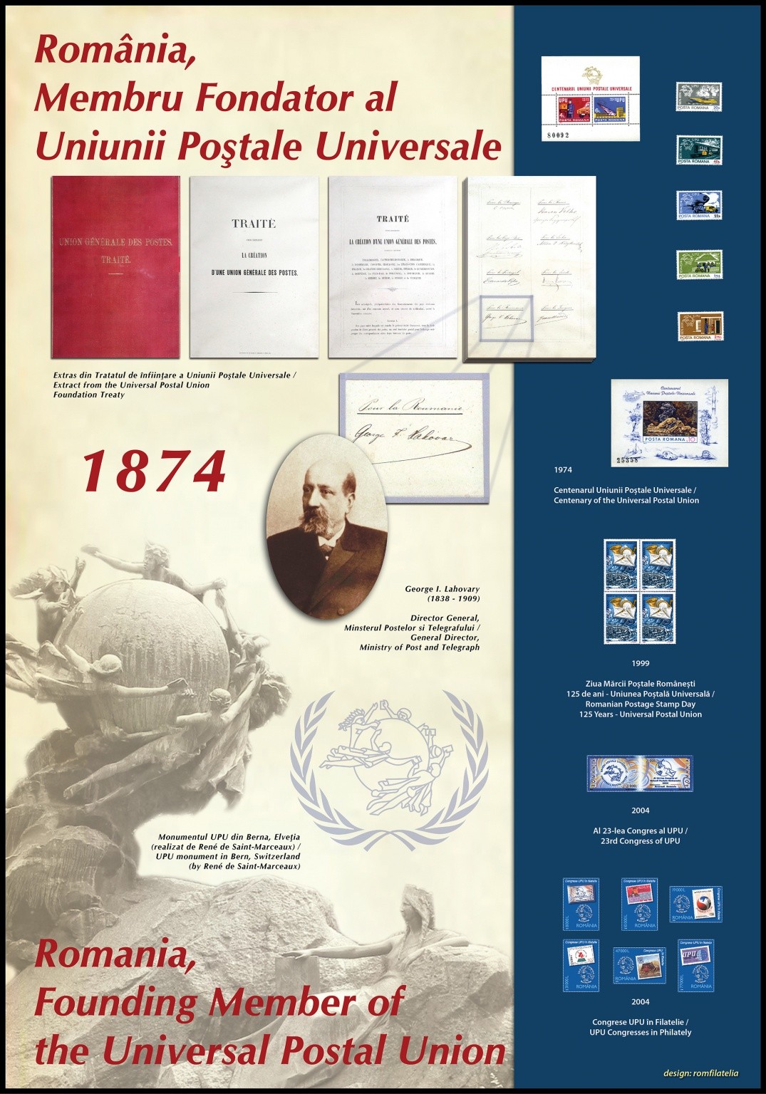 Creată în 1874 prin Tratatul de la Berna, Uniunea Poștală Universală (pe atunci avea numele de Uniunea Generală Poștală) este una din cele mai vechi organizații internaționale, România numărându-se printre cele 22 de țări membre fondatoare.