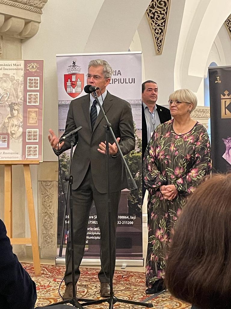 Romfilatelia a fost prezentă, astăzi, la Muzeul Naţional Cotroceni, la un eveniment organizat de Asociaţia ARTIS în parteneriat cu Primăria Municipiului Iaşi, care a încheiat proiectul educativ intitulat Centenarul Încoronării Regelui Ferdinand I şi a Reginei Maria. Găzduit în Salonul Cerchez şi aflat sub auspiciile Familiei Regale a României, evenimentul a reunit personalităţi şi public iubitor al istoriei naţionale, oferind prilejul rememorării unor momente luminoase de început şi de sfârşit de veac XX.