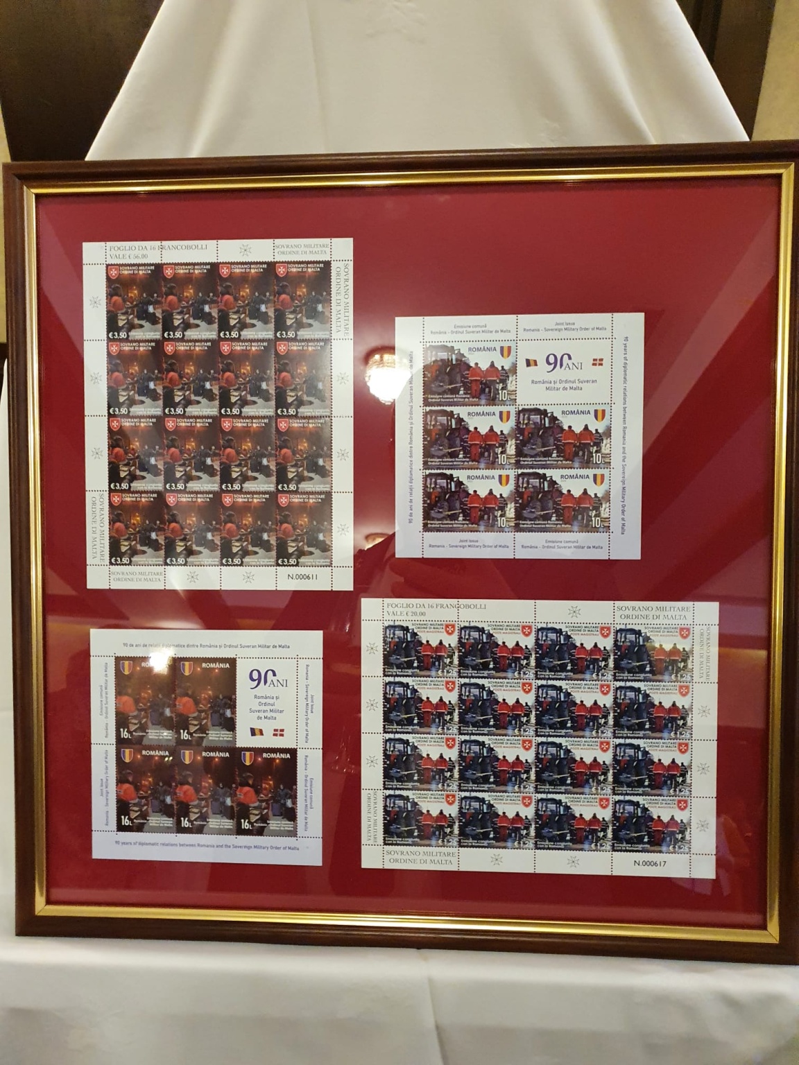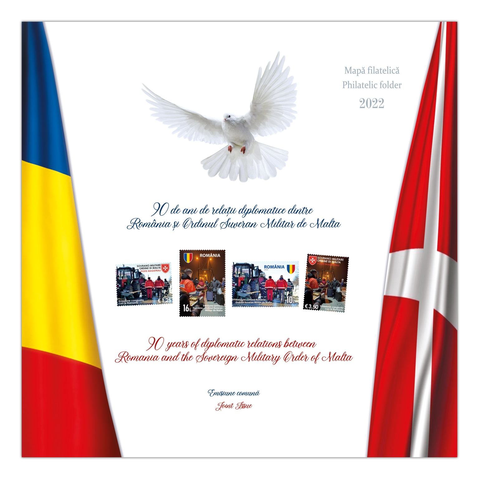 Cu această ocazie și în prezența unei distinse audiențe formate din diverse personalități și reprezentanți ai corpului diplomatic acreditat la București, luni 19 septembrie 2022, Excelența Sa, Domnul Roberto Musneci, ambasadorul extraordinar și plenipotențiar al Ordinului Suveran de Malta a prezentat emisiunea comună aniversară, mulțumind societății Romfilatelia pentru frumoasa colaborare în cadrul proiectului filatelic comun.