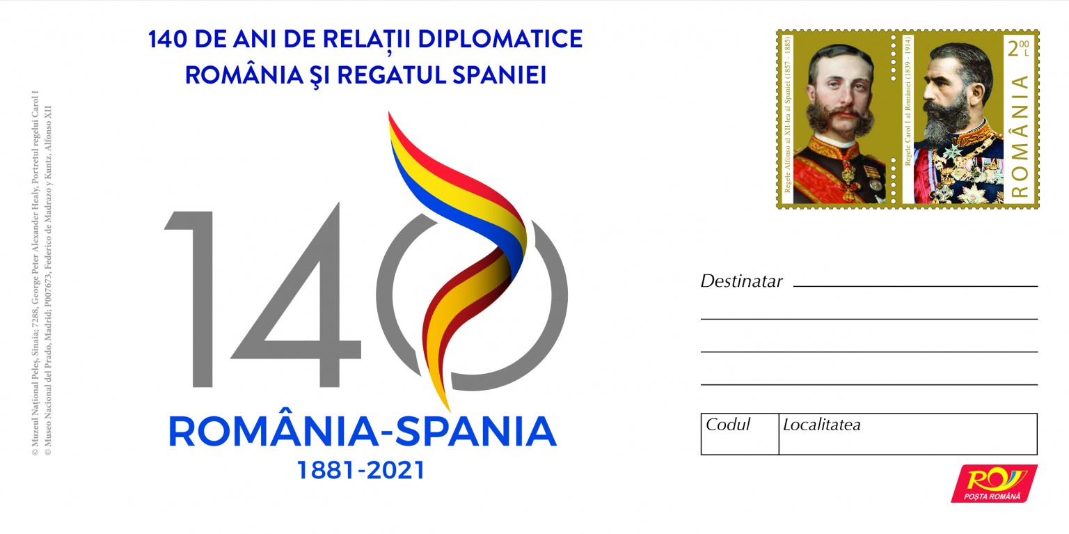 Romfilatelia s-a alăturat evenimentelor dedicate aniversării a 140 de ani de relații diplomatice dintre România și Regatul Spaniei, prin emiterea unui întreg postal.