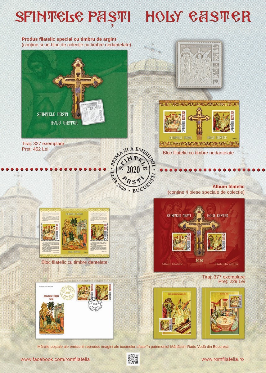 Emisiunea de mărci poștale „Sfintele Paști 2020” va fi disponibilă începând de joi, 12 martie 2020, în magazinele Romfilatelia din București, Bacău, Brașov, Cluj-Napoca, Iași, Timișoara, precum și în magazinul nostru online: https://romfilatelia.ro/store/.