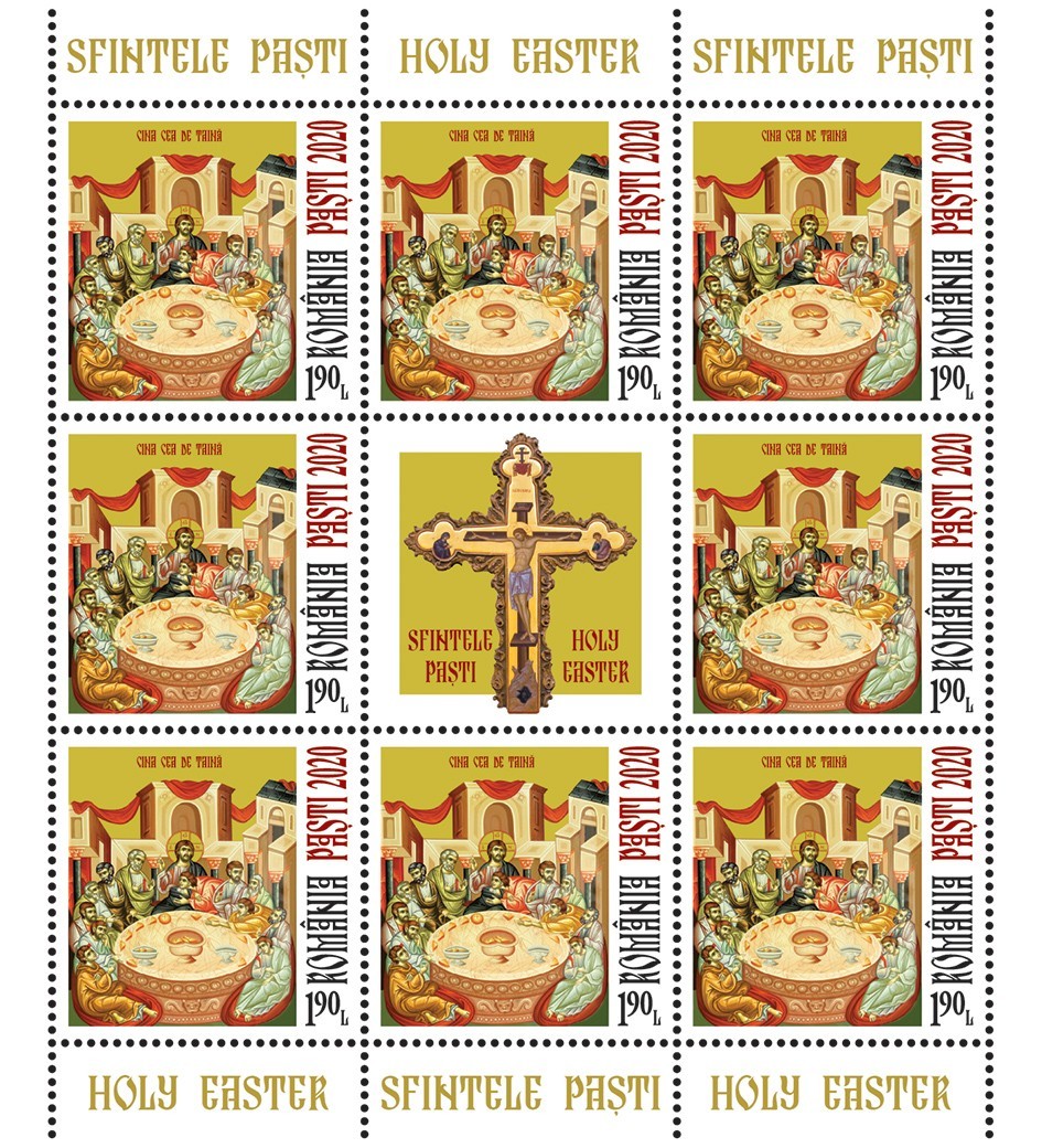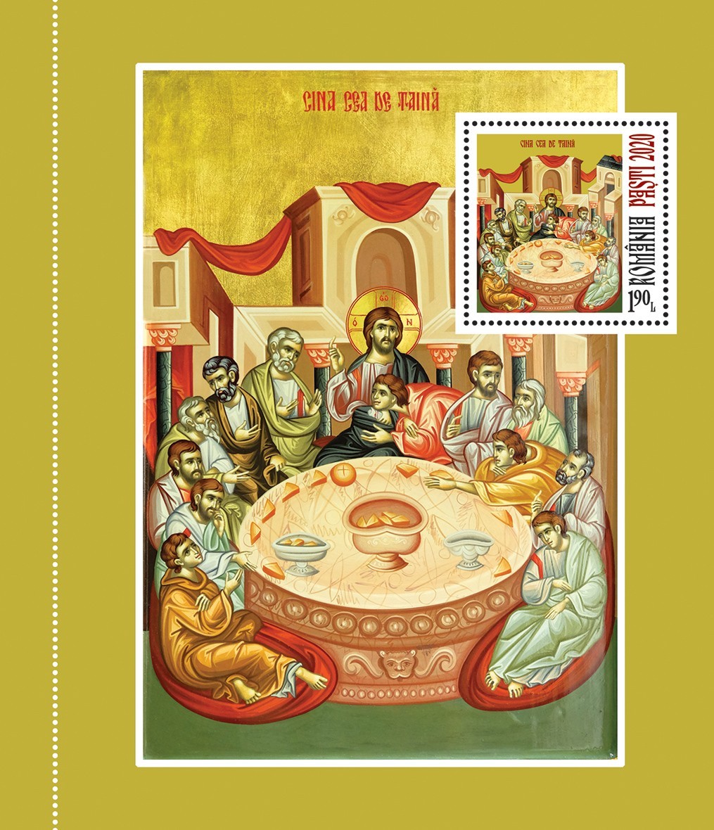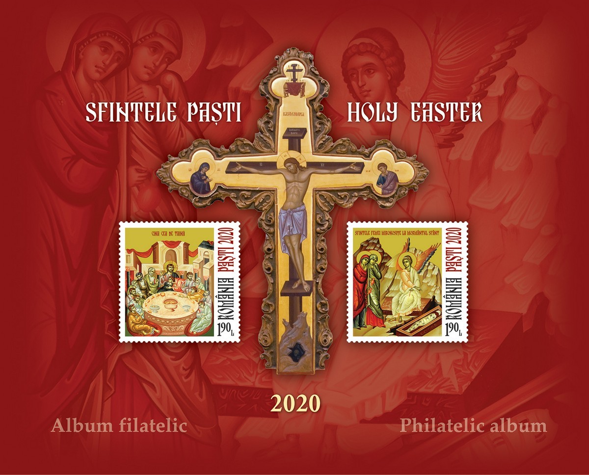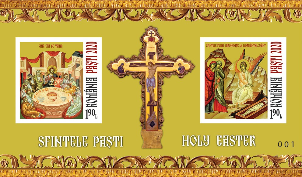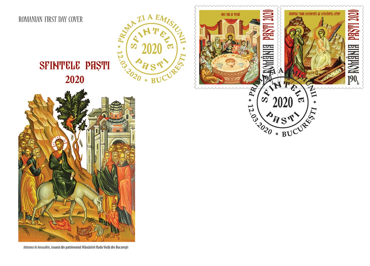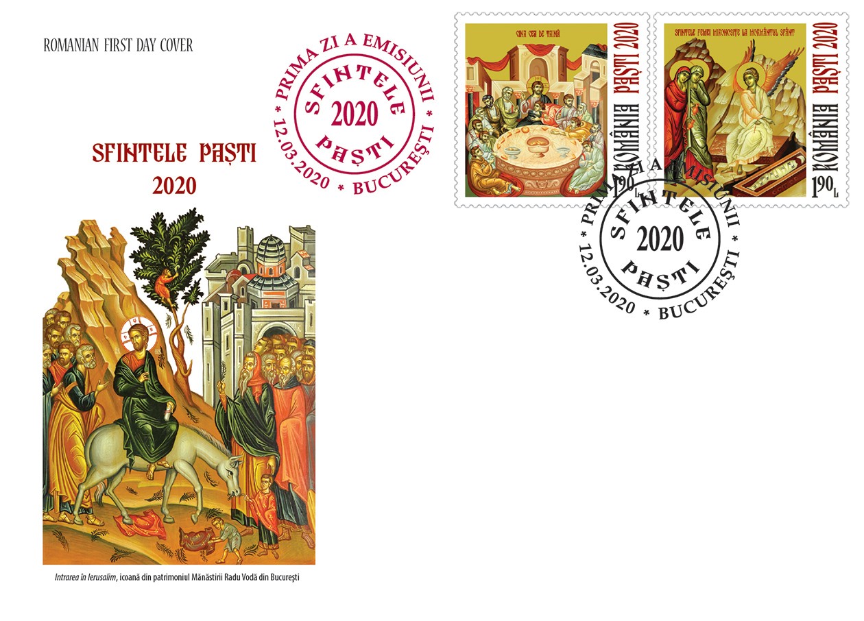 Cele două timbre ale emisiunii de mărci poștale (cu valoarea nominală de 1,90 lei fiecare) reproduc imaginile icoanelor ,,Cina cea de Taină’’ și ,,Sfintele Femei Mironosițe la Mormântul Sfânt’’, aflate în patrimoniul Mănăstirii Radu Vodă din București.