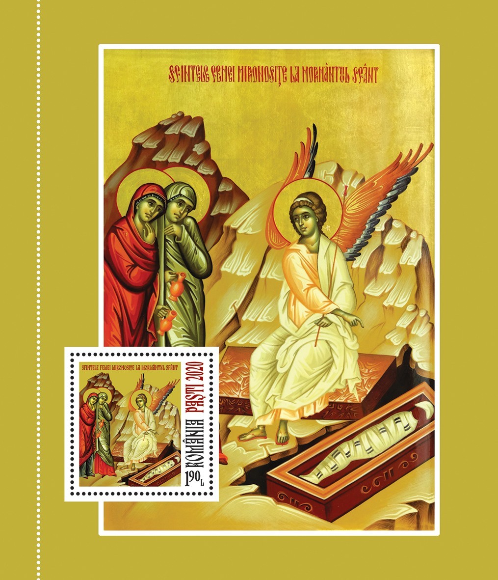 Produsul special, cu timbru de argint, reunește într-o prezentare originală un bloc filatelic de colecție cu două timbre nedantelate, realizat într-un tiraj limitat de 327 exemplare, Certificatul de Autenticitate eliberat de Monetăria Statului ambele înseriate de la 001 la 327, precum și replica modelată în argint a mărcii poștale care ilustrează icoana cu Sfintele mironosițe la Mormântul Sfânt. Icoanele, ale căror imagini sunt reproduse în album, fac parte din patrimoniul Mânăstirii Radu Vodă din București.