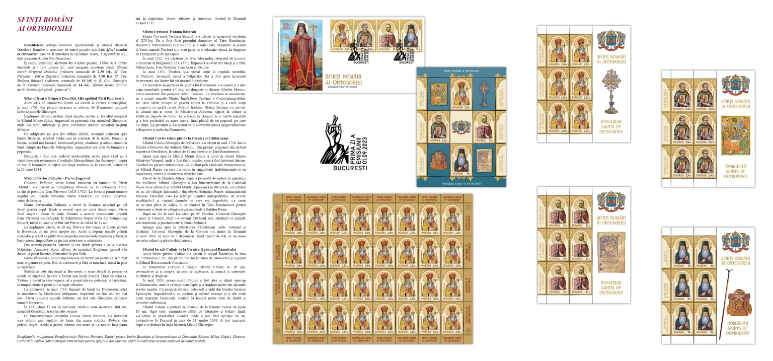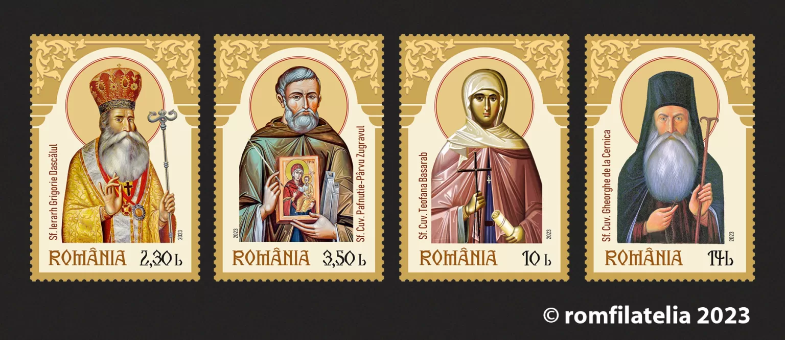 Romfilatelia adaugă tematicii spiritualității și istoriei Bisericii Ortodoxe Române o emisiune de mărci poștale intitulată Sfinți români ai Ortodoxiei, care va fi introdusă în circulație vineri, 1 septembrie a.c., data începerii Anului Nou bisericesc.