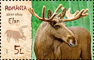 Elanul (Alces alces) este redat pe timbrul cu valoarea nominală de 5 lei.