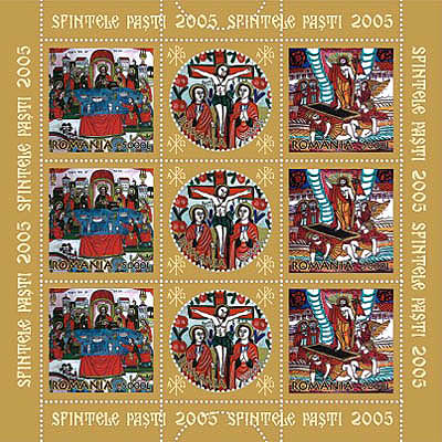 Romfilatelia, societate specializată în emiterea și comercializarea mărcilor poștale în România, lansează cu ocazia Sărbătorilor Pascale, emisiunea filatelică intitulată Sfintele Paști. Sfintele Paști sau Învierea Domnului este cea mai importantă Sărbătoare religioasă a anului, de ea legându-se alte Sărbători cum ar fi Floriile sau Înălțarea. Săptămâna de dinaintea Învierii Domnului este un prilej de meditație