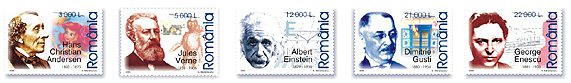 Romfilatelia, societate specializată în emiterea și comercializarea mărcilor poștale în România, lansează a doua parte a seriei de mărci poștale dedicată unor importante personalități de notorietate mondială. Cele cinci timbre sunt dedicate următoarelor personalități: Hans Christian Andersen (1805-1875) scriitor danez, renumit în literatura universală dedicată copiilor. A abordat aproape toate genurile literare: povești, povestiri, poeme,