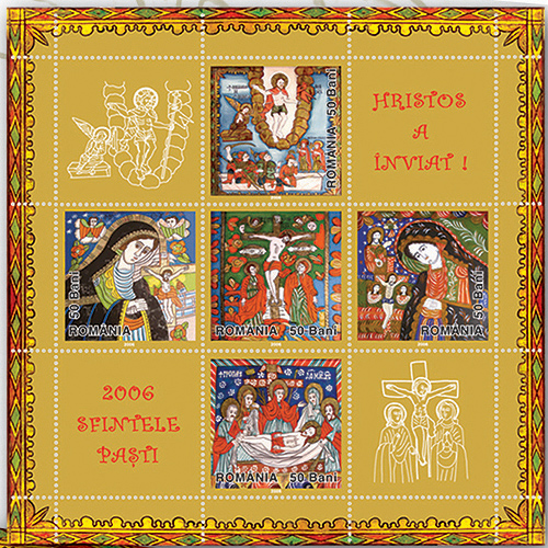 Cu ocazia Sãrbãtorilor Pascale, Romfilatelia introduce în circuitul poştal emisiunea de timbre SFINTELE PAȘTI. Anul acesta Ziua Sfântului Mare Mucenic Gheorghe, Purtãtorul de biruinţã, se sãrbãtoreşte în aceeaşi zi cu Sfintele Paşti. Paştele este celebrarea Învierii lui Iisus Hristos, întemeietorul religiei creştine, nãscut la Betleem, din Fecioara Maria. Botezat de Ioan şi prezentat drept Mesia,
