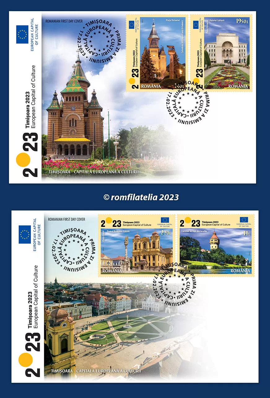Romfilatelia a inclus în planul editorial curent emisiunea de mărci poștale intitulată Timișoara 2023, Capitală Europeană a Culturii, ce va intra în circulație vineri, 17 februarie a.c. Alcătuită din 4 timbre, o coliță dantelată și 2 plicuri prima zi, emisiunea marchează rolul pe care și l-a asumat orașul de pe Bega de a da ora exactă în cultura continentului în acest an.