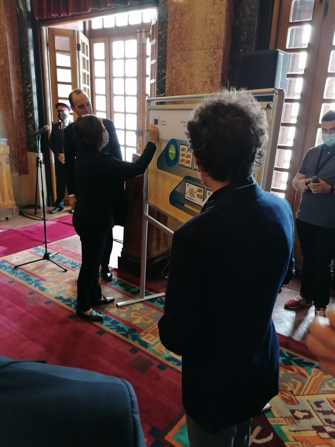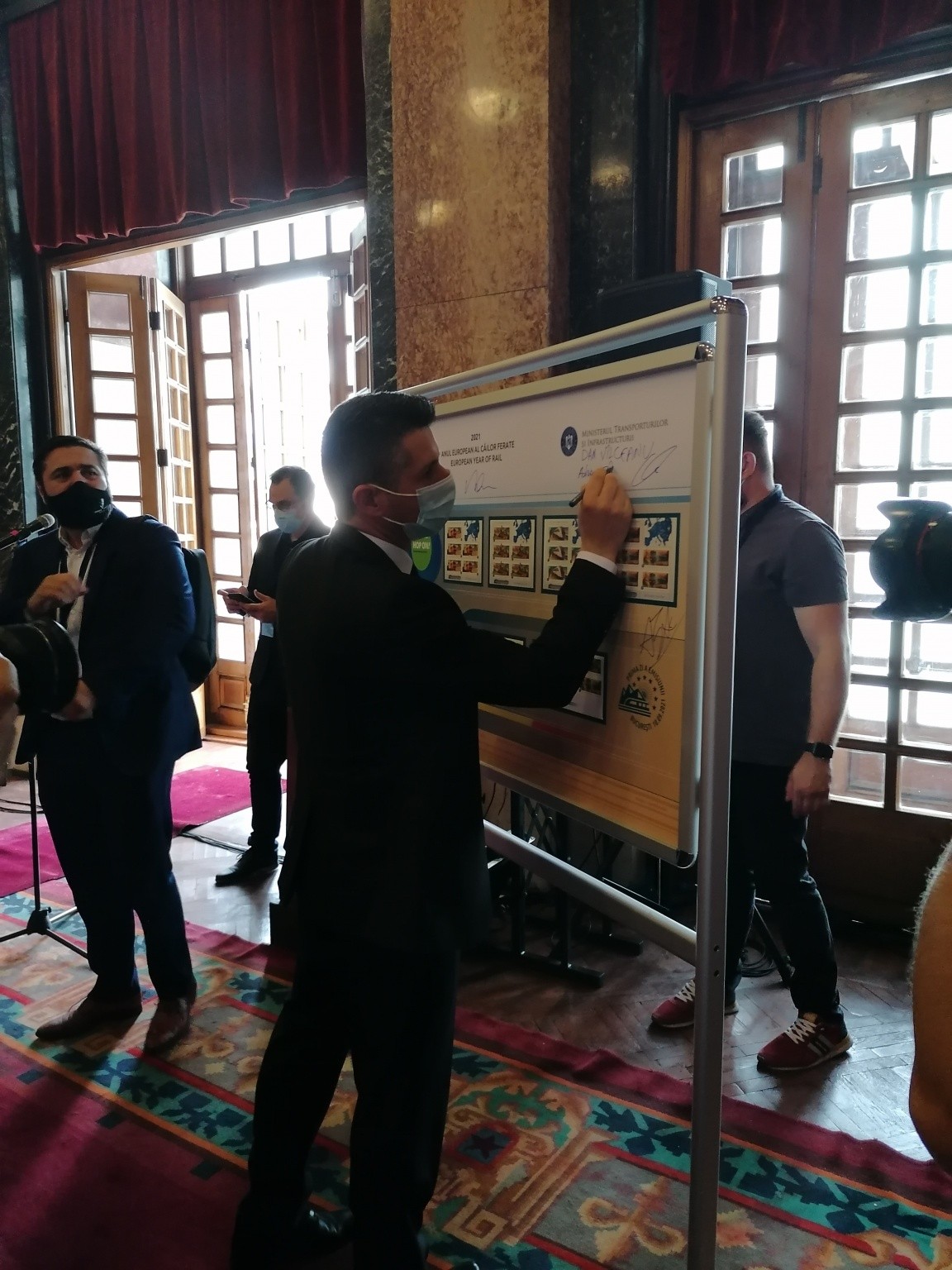 În prezența Comisarului European pentru Transporturi, Adina Vălea, Ministrului interimar al Transporturilor și Infrastructurii, Dan Vîlceanu, Primarului General al Capitalei, Nicușor Dan, Secretarului General adjunct al Ministerului Transporturilor, Adrian-Daniel Găvruță, oficiali ai Ministerului Transporturilor, autorităților locale și reprezentanților presei, Romfilatelia s-a alăturat manifestărilor prin realizarea panoului filatelic special, ce ilustrează elemente ale emisiunii de mărci poștale “Anul European al Căilor Ferate”, lansată vineri, 10 septembrie a.c.