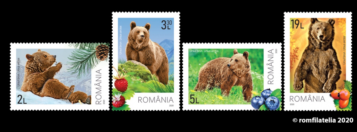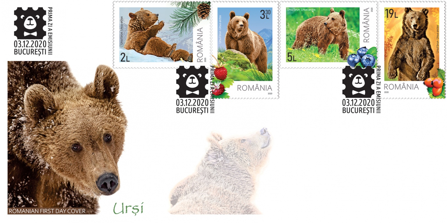 Romfilatelia continuă tematica Faună, foarte apreciată de colecționari, introducând în circulație, joi, 3 decembrie a.c., emisiunea de mărci poștale intitulată „Urși”, alcătuită din patru mărci poştale în care este ilustrat ursul brun, specie emblematică a faunei sălbatice din România.