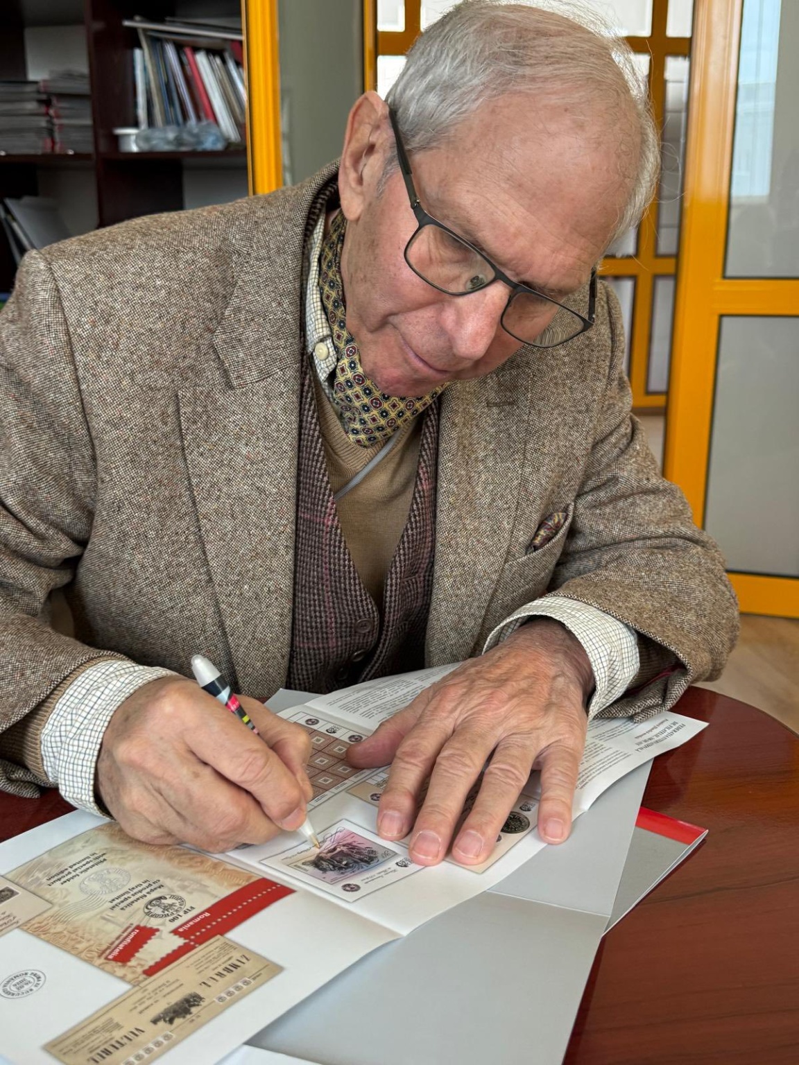 Venit în țară cu ocazia vernisajului expoziției „Capricii și delicii”, găzduită la Palatul Braunstein din Iași, Tudor Banus artiste ne-a făcut onoarea unei vizite speciale la sediul Romfilatelia.