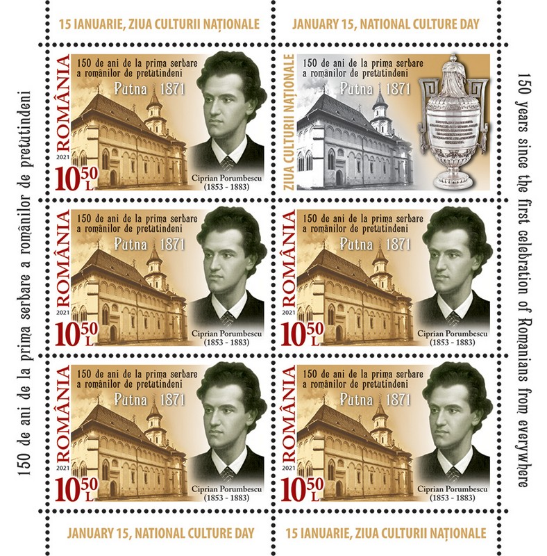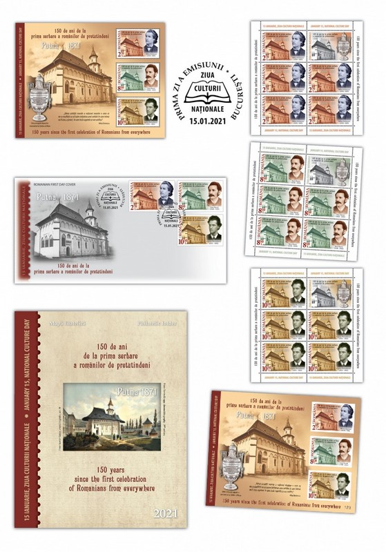 Emisiunea de mărci poștale „Ziua Culturii Naționale.150 de ani de la prima serbare a românilor de pretutindeni” va fi disponibilă începând de vineri, 15 ianuarie 2021, în magazinele Romfilatelia din București, Bacău, Brașov, Cluj-Napoca, Iași, Timișoara, precum și în magazinul nostru online: https://romfilatelia.ro/store/. Aceasta este completată de plicul „prima zi”, coala de 32 timbre, minicoala de 5 timbre + 1 vinietă, bloc de 3 timbre dantelate și bloc special de 3 timbre nedantelate.