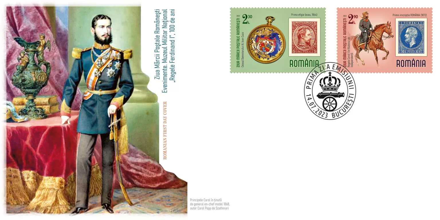 Ziua Mărcii Poștale Românești – 2023 evidențiază în imaginile mărcilor poștale mai multe evenimente legate de istorie și filatelie: Alături de împlinirea a 165 de ani de la apariția primului timbru românesc, „Cap de bour”, emisiunea filatelică dedicată sărbătorii mărcii poștale adaugă Centenarul Muzeului Militar Național „Regele Ferdinand I”. Completând grafica celor patru timbre, se regăsesc imagini ale unor mărci poștale vechi, premiere filatelice: prima efigie reprodusă pe timbre (Alexandru Ioan Cuza, 1864), prima inscripționare ROMÂNIA pe mărcile poștale (1872), primele mărci poștale Ferdinand I (1919) și unica emisiune aniversară Ferdinand I (60 de ani, 1926).