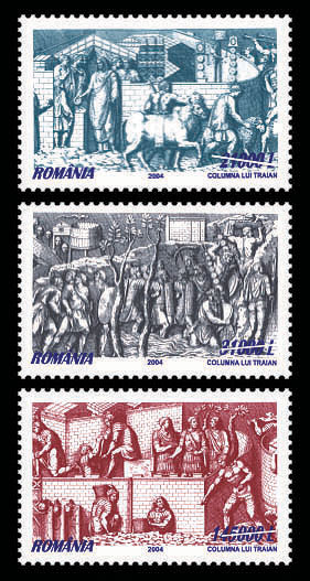 Romfilatelia, societate specializată în emiterea și comercializarea mărcilor poștale în România, pune în circulație o emisiune de mărci poștale uzuale ce reproduc imagini de pe Columna lui Traian.