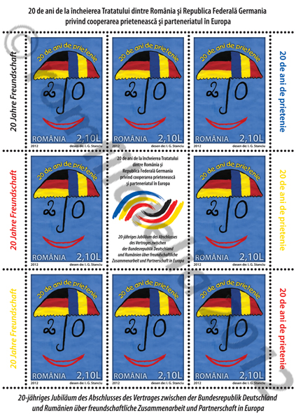 La un an de zile de la emiterea emisiunii comune de timbre România-Germania „Biserica fortificată din Biertan“, cu ocazia aniversării a două decenii de la semnarea Tratatului româno-german, Romfilatelia introduce în circulaţie o emisiune de mărci poştale dedicată acestui eveniment.