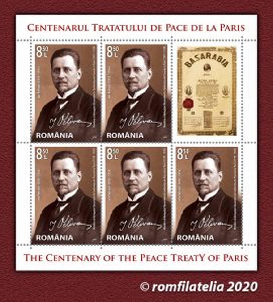 La împlinirea a 100 de ani de la semnarea Tratatelor de Pace de la Paris, Romfilatelia introduce în circulație, miercuri, 28 octombrie a.c., o emisiune de mărci poștale sub titlul tematic Tratatele de Pace de la Paris, 1919–1920.