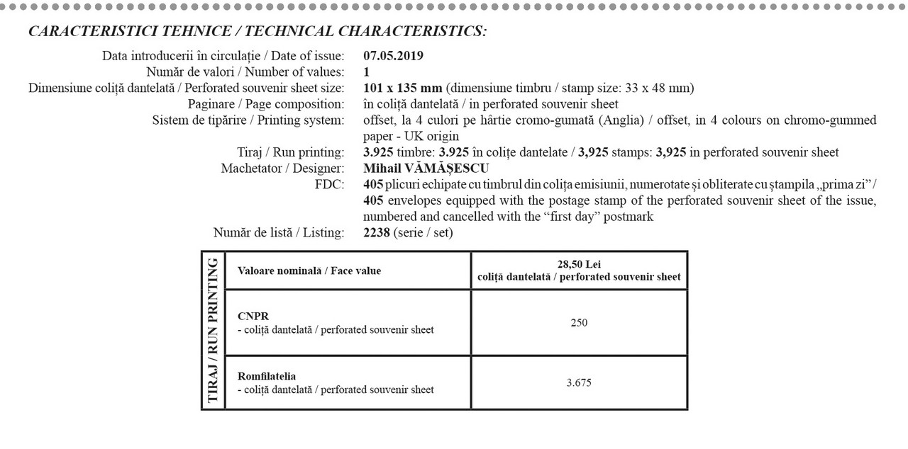 Romfilatelia mulțumește Curții de Conturi a României pentru sprijinul documentar acordat la realizarea acestei emisiuni de mărci poștale.