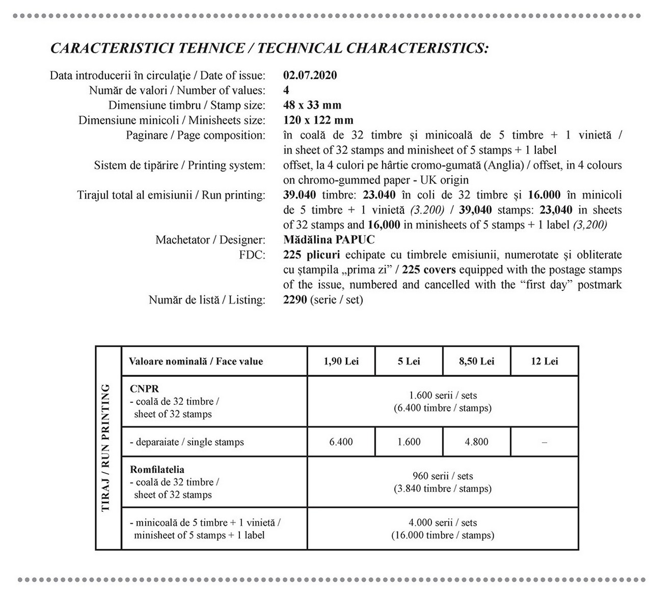 Romfilatelia mulțumește Muzeului Național de Istorie Naturală „Grigore Antipa” din București pentru sprijinul documentar acordat la realizarea acestei emisiuni de mărci poștale.