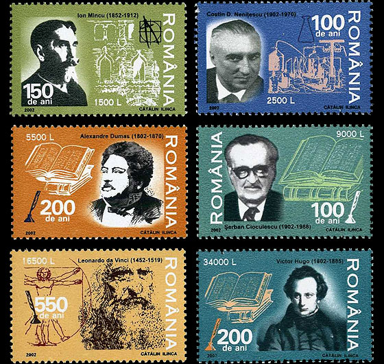 Detaliile tehnice ale emisiunii de timbru românesc din 01.03.2002 “Aniversări – Personalităţi” (Număr de listă 1580, 5/1580)