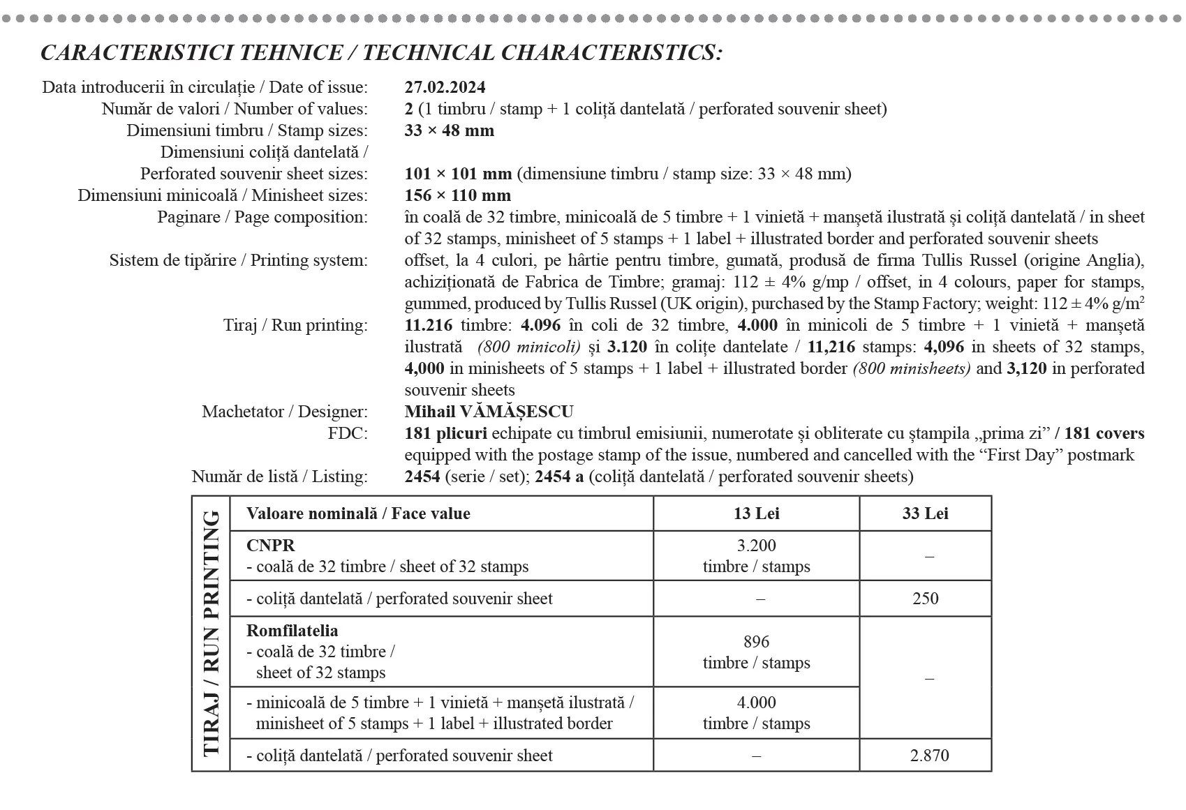 Romfilatelia mulțumește reprezentanților Bibliotecii Academiei Române, ai Muzeului Național de Istorie a României, ai Muzeului Național al Unirii din Alba Iulia și ai Muzeului Civilizației Dacice și Romane Deva, pentru sprijinul documentar acordat la realizarea acestei emisiuni de mărci poștale.