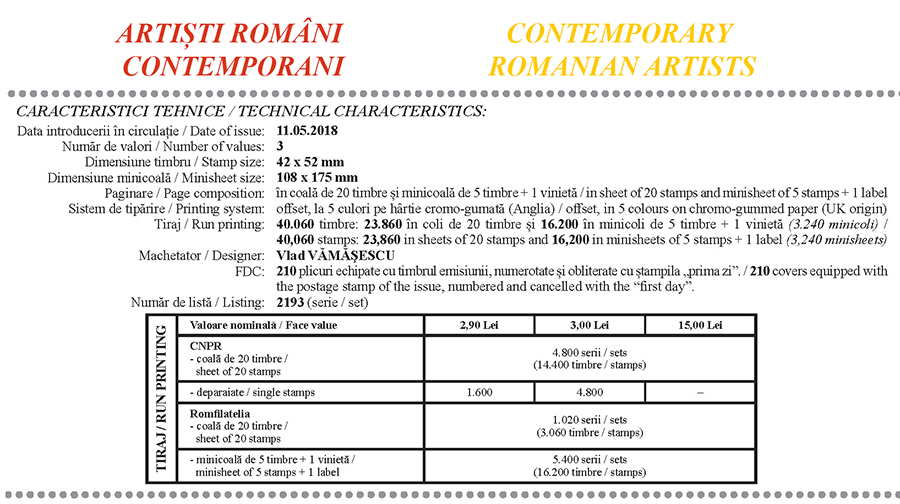 ARTIȘTI ROMÂNI CONTEMPORANI – Romfilatelia-O lume intr-un timbru