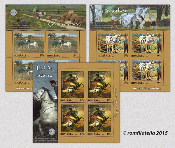 Sub titlul Cai în pictură, Romfilatelia vă invită să redescoperiţi frumuseţea picturii româneşti din patrimoniul Muzeului Naţional de Artă al României, oferind astfel o privire de ansamblu asupra relaţiei dintre om şi acest nobil animal, prezentată de mari pictori români în diferite ipostaze.