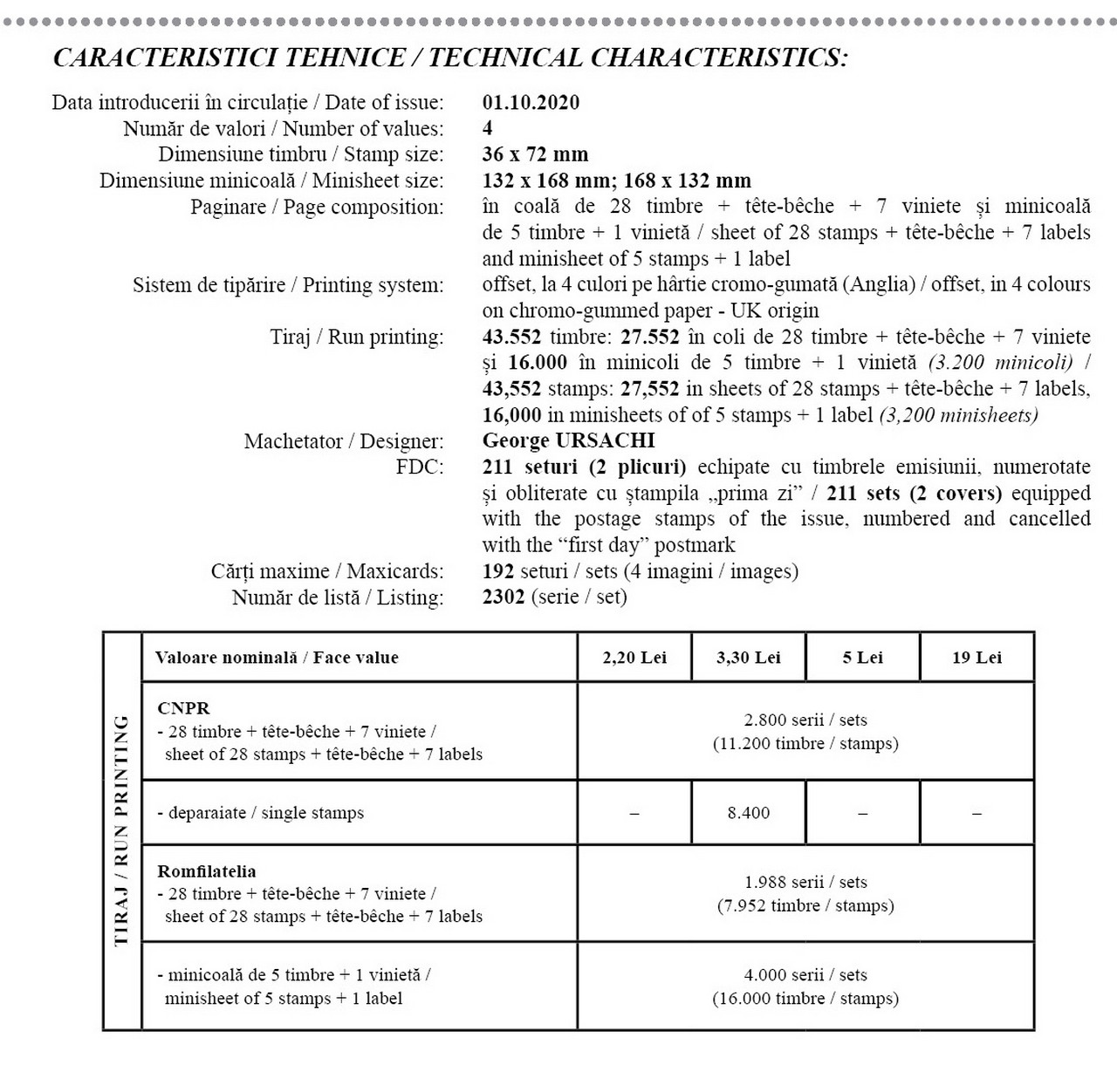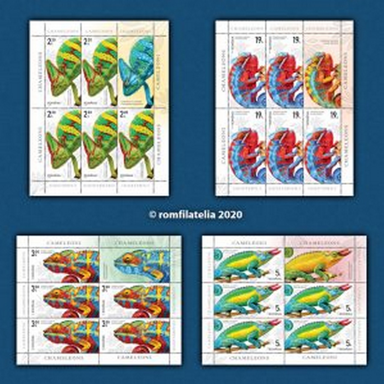 Pe timbrele cu valorile nominale de 3,30 Lei și 19 Lei este redat cameleonul panteră (Furcifer pardalis).