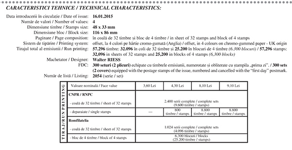 Toate aceste caracteristici şi multe alte curiozităţi se regăsesc în pliantul informativ care oferă mai multe detalii şi însoţeşte cele 4 timbre ale emisiunii filatelice.