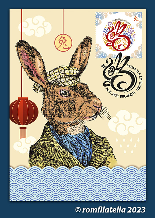 Carte maximă ZODIACUL CHINEZESC. IEPURELE DE APĂ – Romfilatelia-O lume intr-un timbru