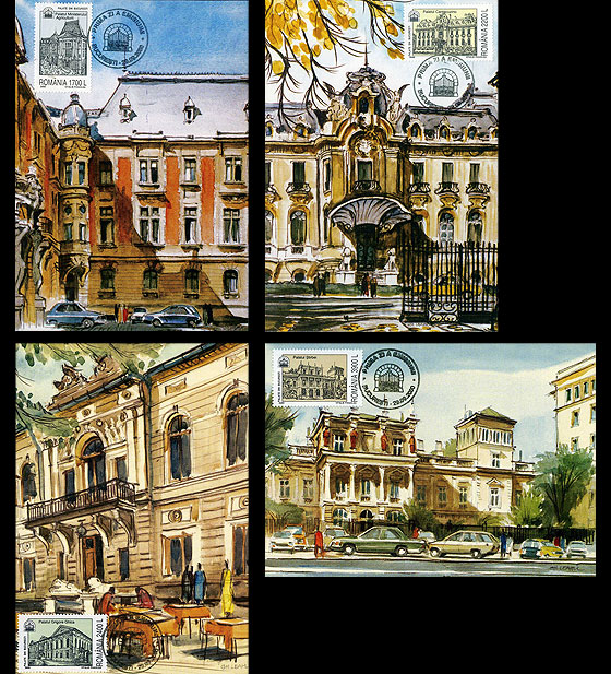 Cărti postale maxime – Palate din București – Romfilatelia-O lume intr-un timbru