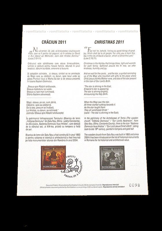 Carton filatelic CRÃCIUN 2011 – Romfilatelia-O lume intr-un timbru