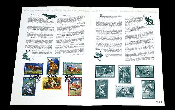 Carton filatelic FAUNÃ PROTEJATÃ DIN ROMÂNIA – Romfilatelia-O lume intr-un timbru