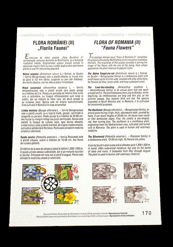 Carton filatelic FLORA ROMÂNIEI (II) – „Florile faunei“ – Romfilatelia-O lume intr-un timbru
