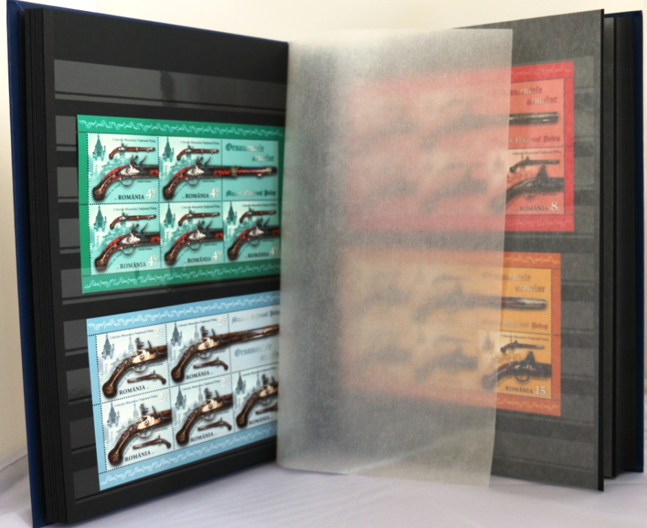 Clasor filatelic A4 pe fundal negru – Romfilatelia-O lume intr-un timbru