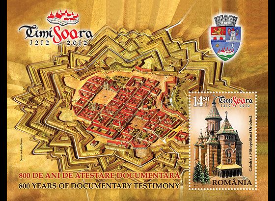 Colita dantelata TIMIȘOARA – 800 DE ANI DE ATESTARE DOCUMENTARÃ – Romfilatelia-O lume intr-un timbru