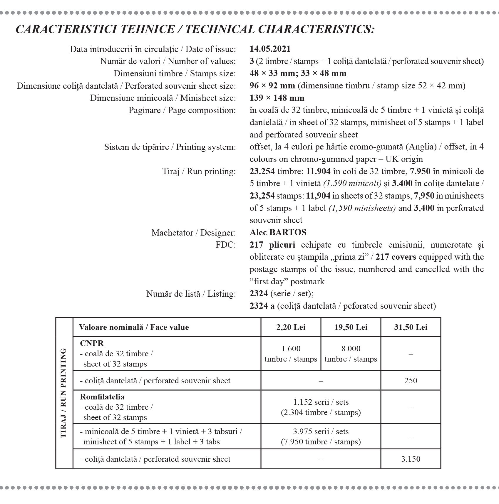 Al doilea timbru al emisiunii, cu valoarea nominală de 19,50 lei, îl ilustrează pe Dumitru-Dorin Prunariu în costum de cosmonaut, detalii din planurile tehnice ale rachetei Soiuz și logoul aniversar 40 (ani) Prunariu.