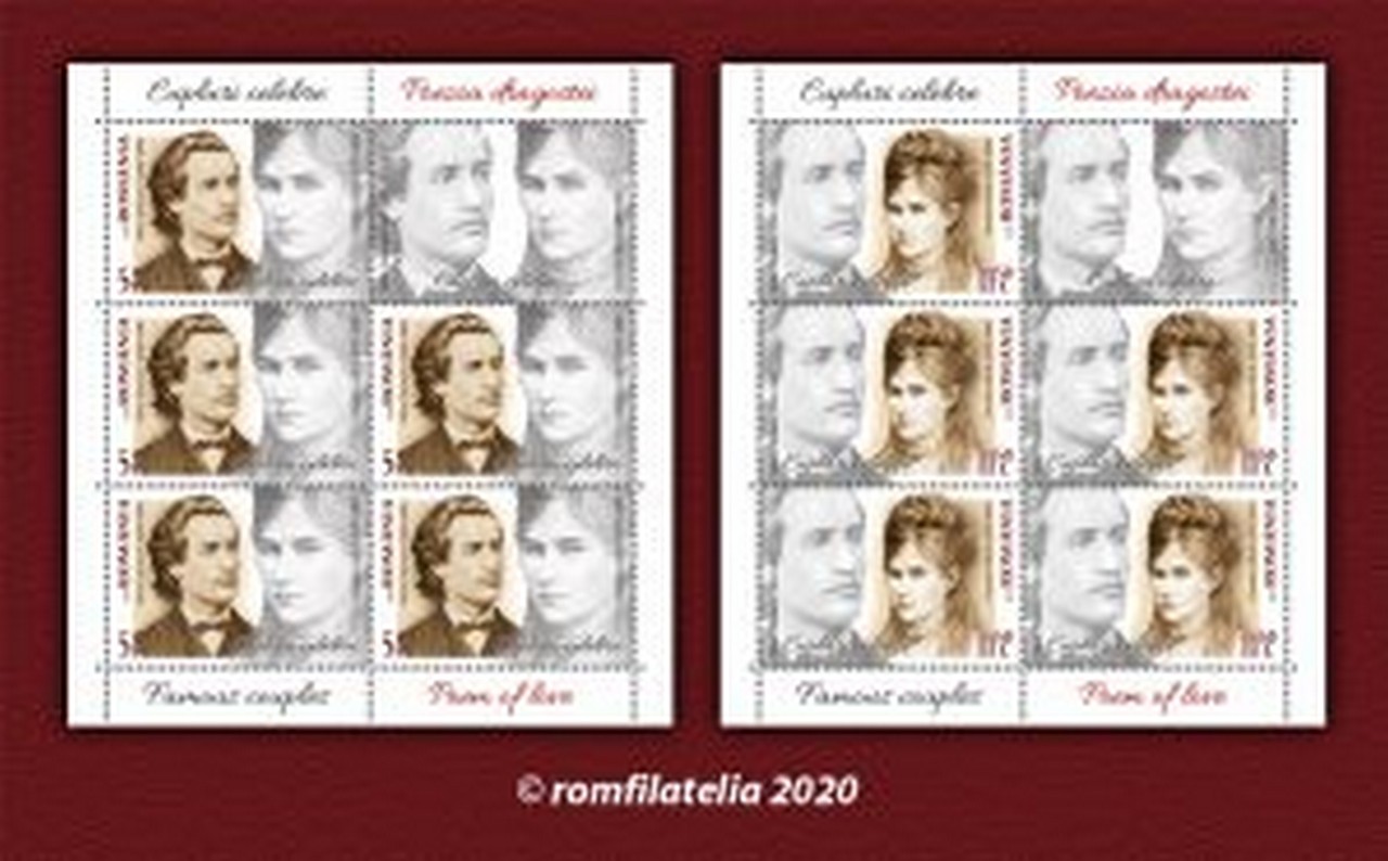 Romfilatelia introduce în circulație miercuri, 15 ianuarie a.c., emisiunea de mărci poștale Cupluri celebre. Poezia dragostei, pentru a marca Ziua Culturii Naționale. 15 ianuarie 1850 – o zi și un an menționate într-un înscris, păstrat la Biserica Uspenia din Botoșani, care atestă nașterea poetului Mihai Eminescu. 15 ianuarie a devenit Ziua Culturii Naționale prin decretul prezidențial semnat în data de 6 decembrie 2010.