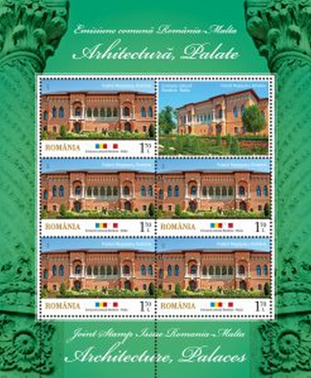 Romfilatelia introduce în circulație pe data de luni, 14 octombrie a.c. emisiunea comună de mărci poștale România-Malta intitulată „Arhitectură, Palate”, ilustrând Palatul Mogoșoaia din România și Palatul Verdala din Malta.