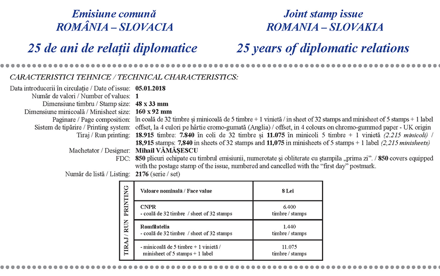 Romfilatelia mulțumește Ambasadei României la Bratislava, Poștei Slovace și Oficiului Național pentru Cultul Eroilor pentru sprijinul documentar și fotografic acordat la realizarea acestei emisiuni comune de mărci poștale.
