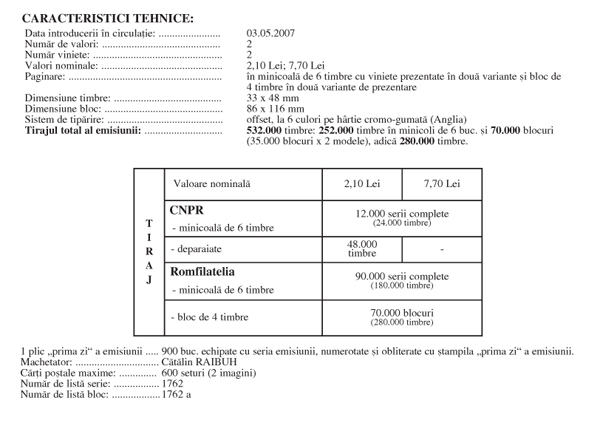 Această emisiune marchează un eveniment naţional şi internaţional, de importanţă deosebită atât pentru filateliştii de toate vârstele, cât şi pentru publicul larg, datorită modalităţilor foarte diverse de ilustrare a acestei tematici. Tema stabilită de POSTEUROP, sub genericul EUROPA, este abordată de fiecare ţară membră a acestui organism, ţinând cont de specificul propriu. Timbrele cu această temă, emise de fiecare ţară în parte, vor participa la un important concurs internaţional.
