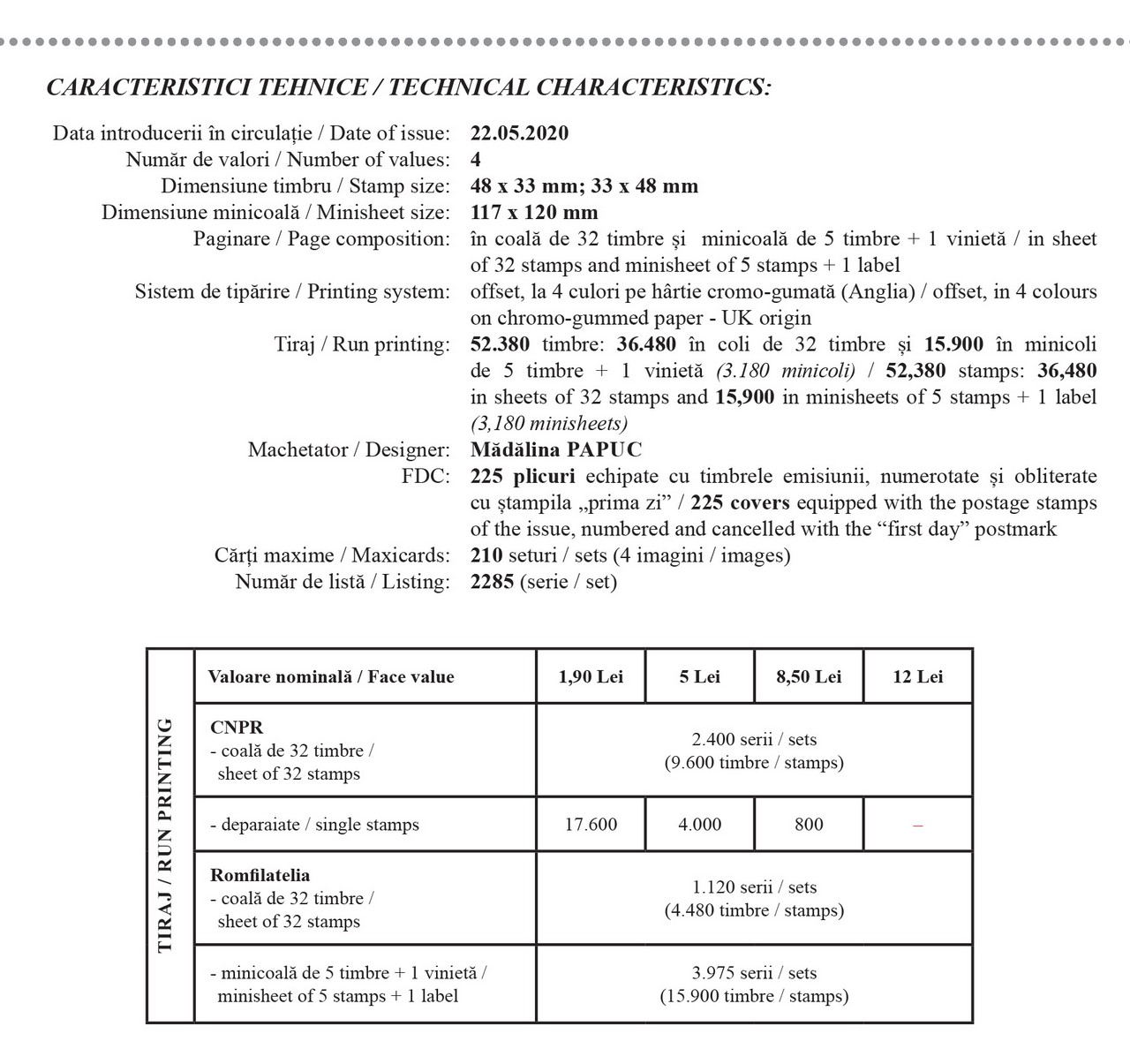 Romfilatelia mulțumește Muzeului Național de Istorie Naturală „Grigore Antipa” din București pentru sprijinul documentar acordat la realizarea acestei emisiuni de mărci poștale.