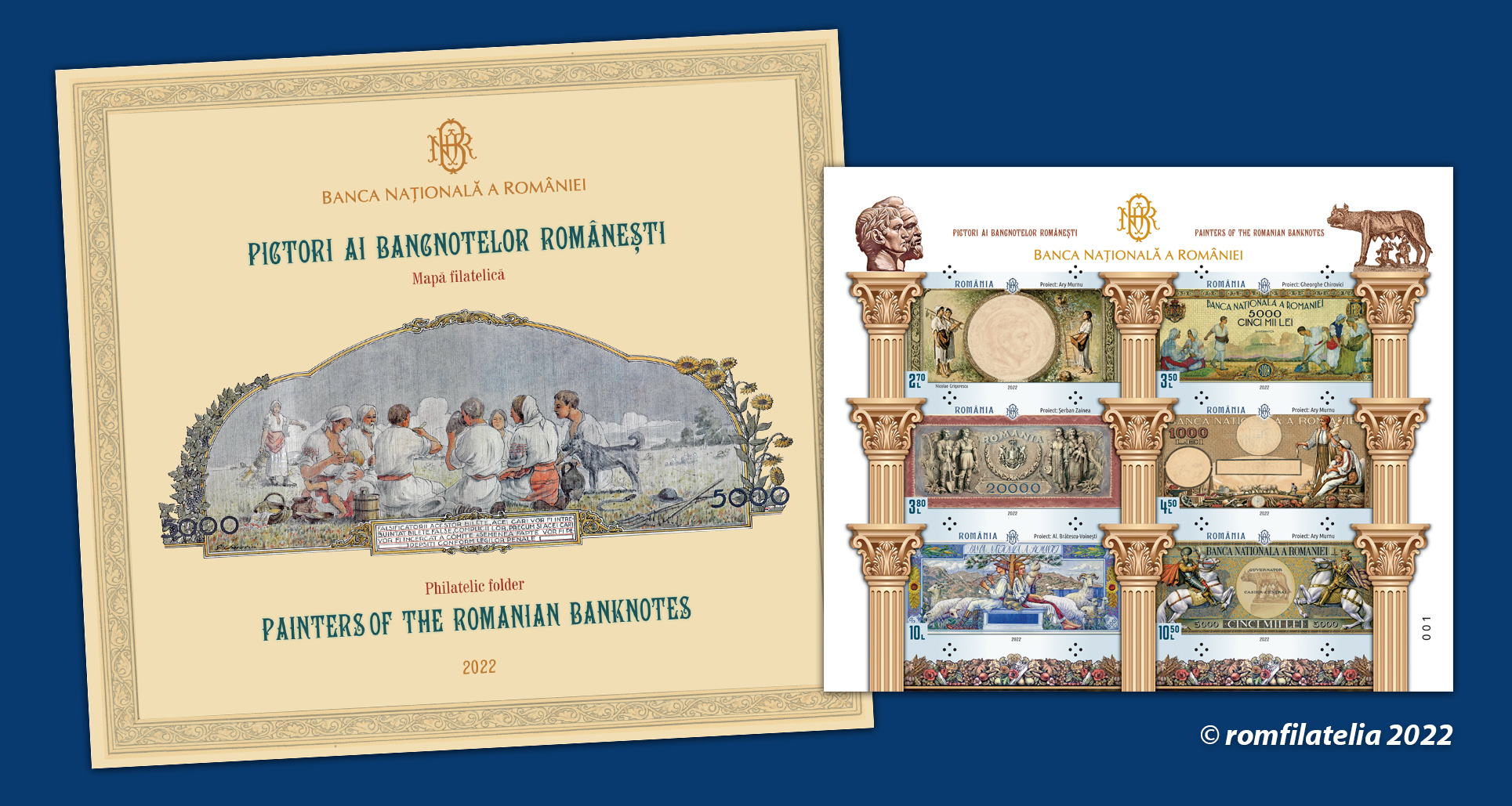Mapă filatelică PICTORI AI BANCNOTELOR ROMÂNEȘTI – Romfilatelia-O lume intr-un timbru