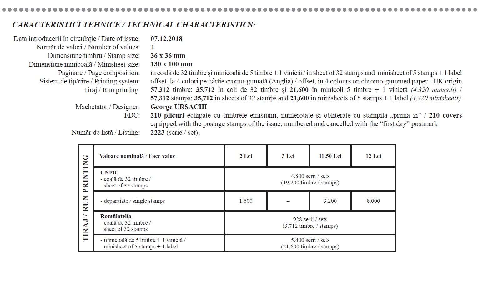 Timbrul cu valoarea nominală de 11,50 lei prezintă un grup de colindători, iar timbrul cu valoarea nominală de 12 lei sugerează obiceiul din noaptea Anului Nou, Sorcova.