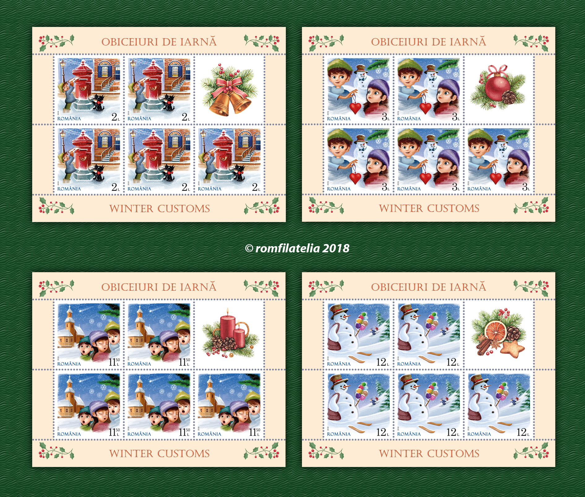 Cu ocazia Sărbătorilor sfârșitului de an, Romfilatelia introduce în circulație emisiunea de mărci poștale Obiceiuri de iarnă.