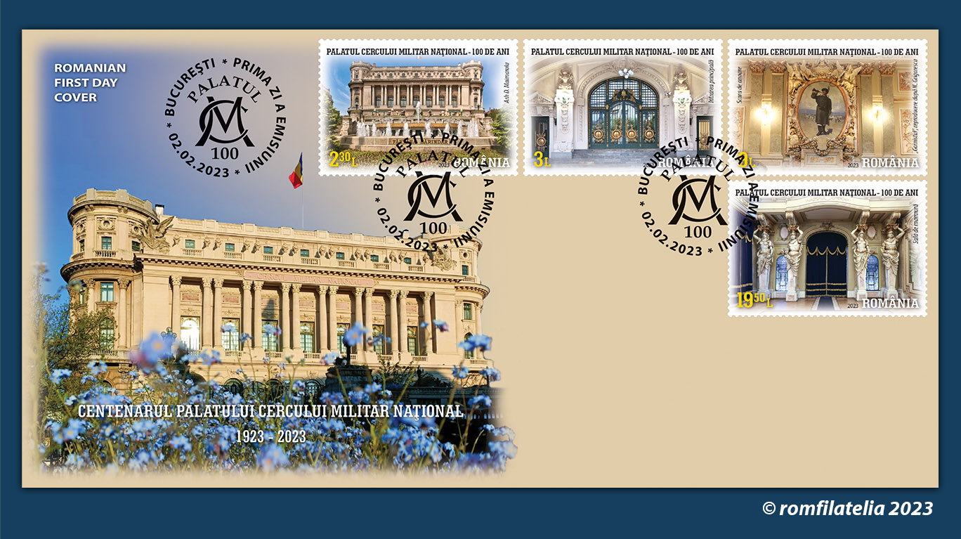 Plic prima zi CENTENARUL PALATULUI CERCULUI MILITAR NAȚIONAL – Romfilatelia-O lume intr-un timbru