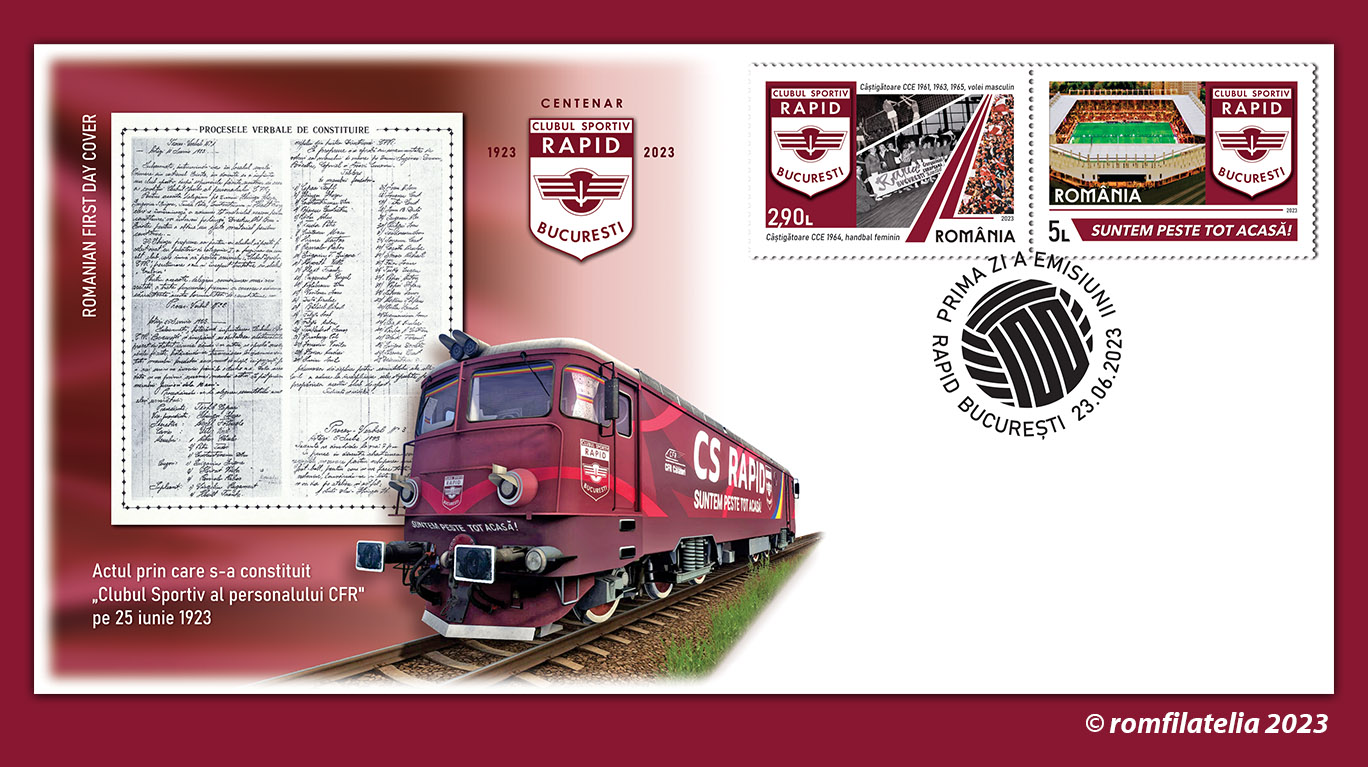 Plic prima zi CLUBUL SPORTIV RAPID BUCUREȘTI, 100 DE ANI – Romfilatelia-O lume intr-un timbru
