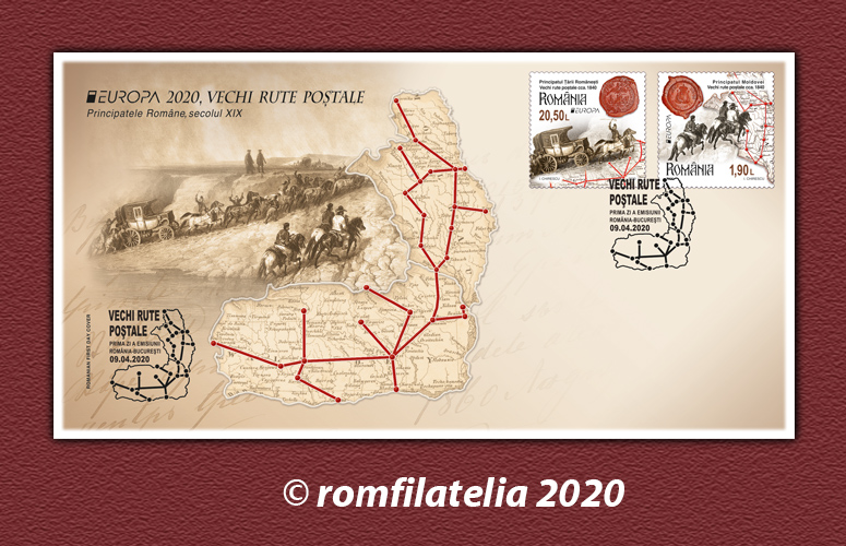 Plic prima zi Europa 2020 VECHI RUTE POȘTALE – Romfilatelia-O lume intr-un timbru