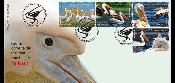 Plic prima zi Faună ocrotită din rezervaţiile româneşti: pelicani – Romfilatelia-O lume intr-un timbru