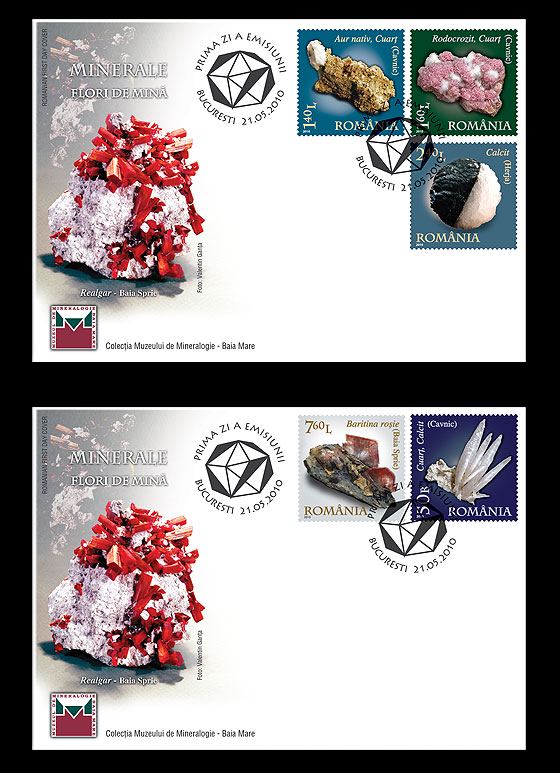 Set plicuri prima zi MINERALE – Flori de minã – Romfilatelia-O lume intr-un timbru
